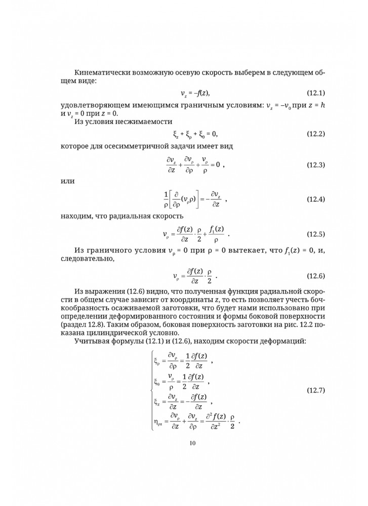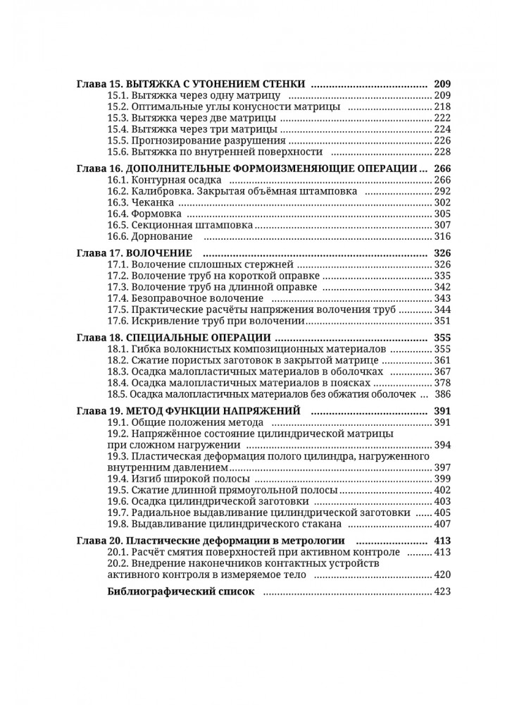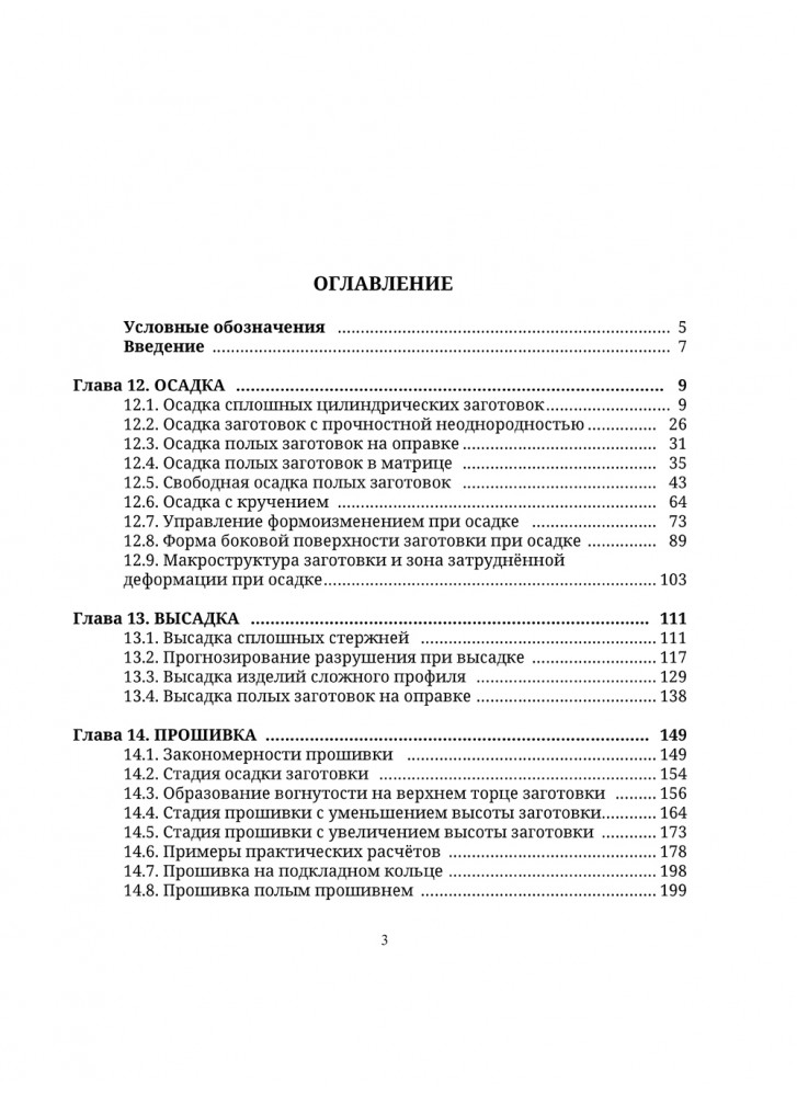 В третьем томе семитомника изложены результаты теоретических и экспериментальных исследований осадки, высадки, прошивки, вытяжки с утонением стенки, вытяжки по внутренней поверхности, контурной осадки, калибровки, закрытой объёмной штамповки, чеканки, формовки, секционной штамповки, дорнования. Ввиду неразрывной связи этого тома с предыдущими, которые данный том фактически продолжает, нумерация глав и разделов также будет продолжена. В дополнение к первому и второму томам в третьем томе приведены формулы и методы расчёта основных технологических параметров различных способов волочения труб и прутков. Рассмотрены специальные операции гибки волокнистых композиционных материалов, сжатия порошковых заготовок в закрытой матрице и осадки малопластичных материалов в оболочках. Изложен разработанный автором метод функции напряжений с приведением примеров решения различных задач обработки металлов давлением. Приведены исследования пластических деформаций применительно к метрологии. Показана возможность использования полученных закономерностей в качестве научных основ для разработки прогрессивной технологии, и приведены соответствующие примеры выполнения конкретных расчётов. Высокая точность полученных теоретических формул подтверждена 963 сопоставлениями результатов расчёта с экспериментальными данными автора и ведущих специалистов в области обработки металлов давлением.
